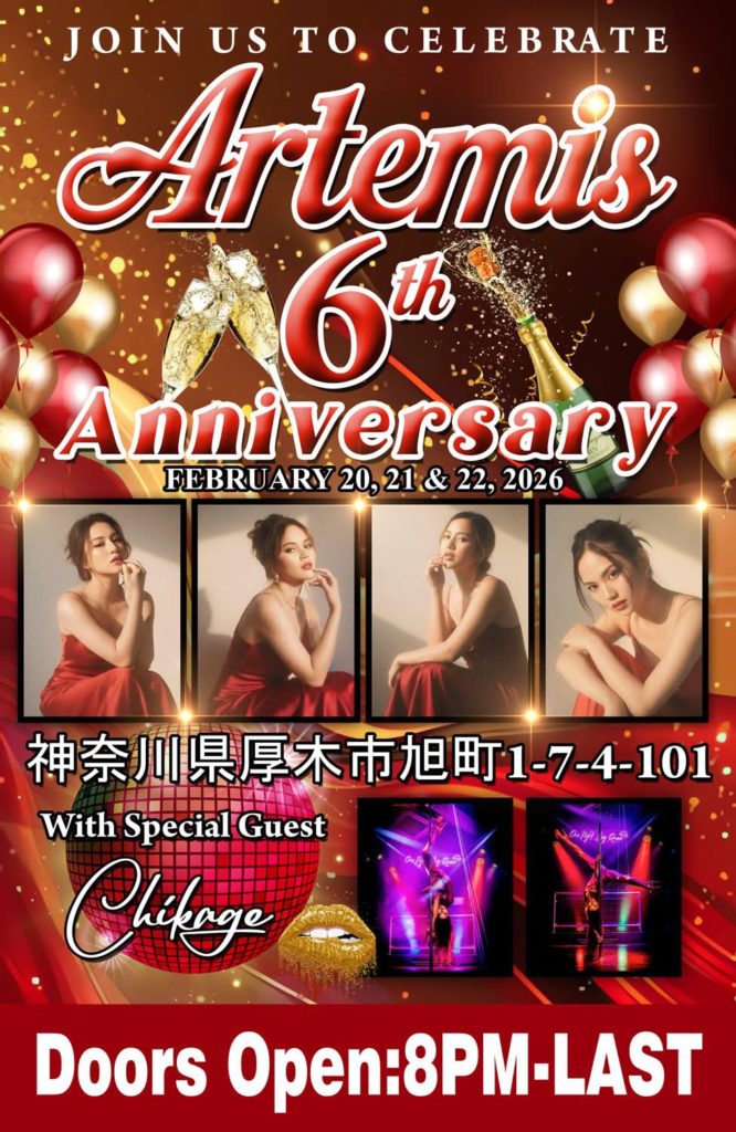 日頃よりフィリピンパブ「アルテミス」をご愛顧いただき、誠にありがとうございます。 皆様に支えられ、当店は2026年2月22日に開店6周年を迎えることとなりました。