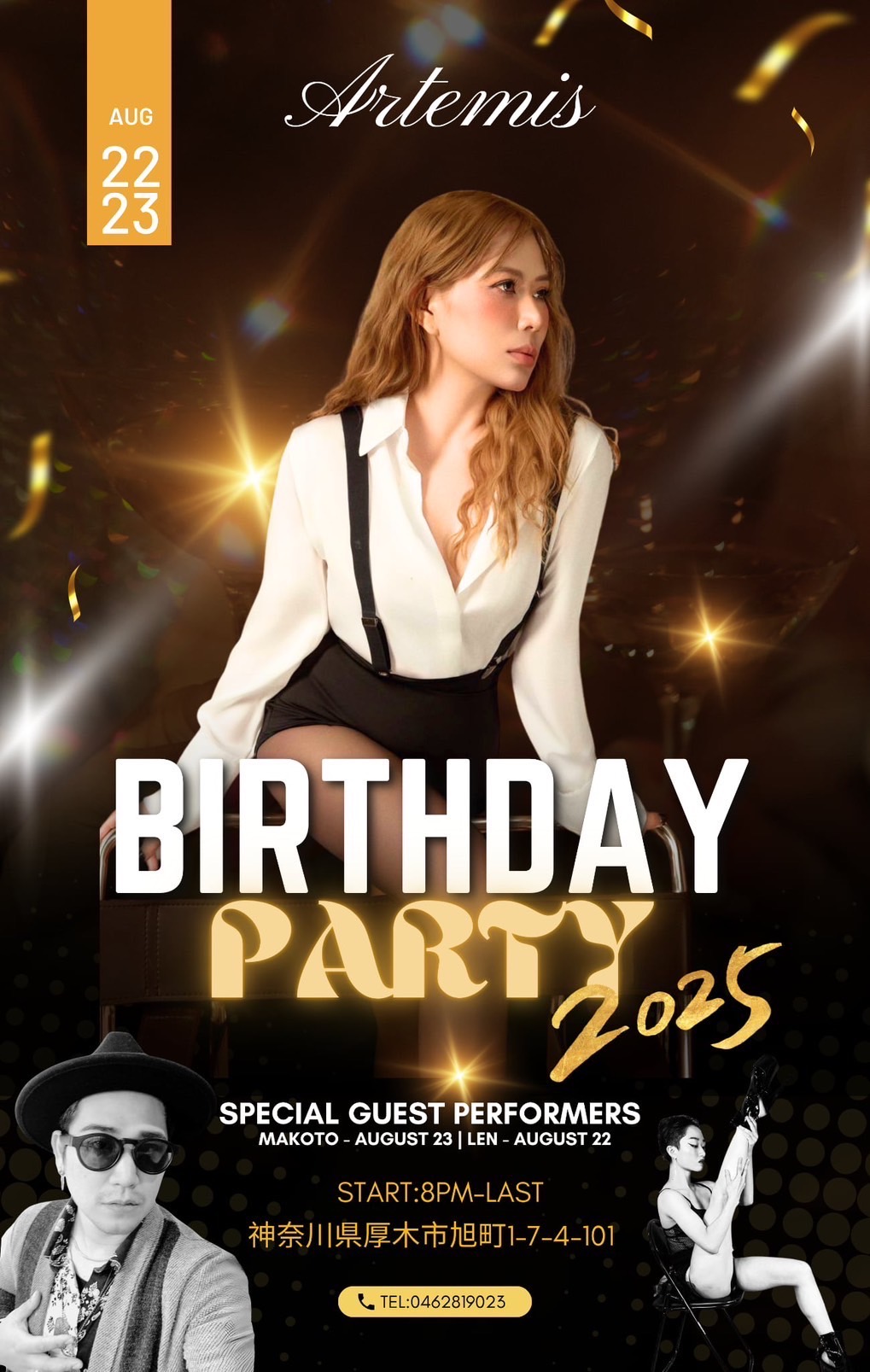 MAI) MAI BIRTHDAY PARTY いつもアルテミスをご利用いただき有難うございます。来る10月4日土曜日、当店キャストのMAIのバースデイパーティーを行います。当日はダンス・パフォーマーのLENさんを特別ゲ […]