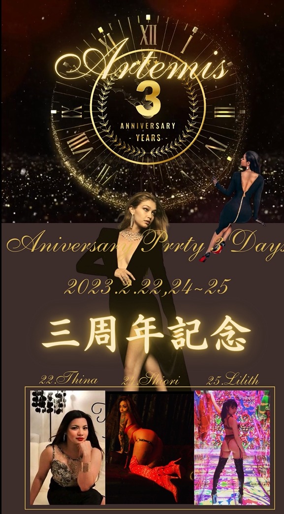 2月22日、24日、25日 三周年記念イベント 【アルテミス3周年記念パーティー】 いつもアルテミスにご来店いただき有り難うございます。 アルテミスは2023年2月22日に3周年を迎えます。日頃の感謝の気持ちを込めて、3 […]