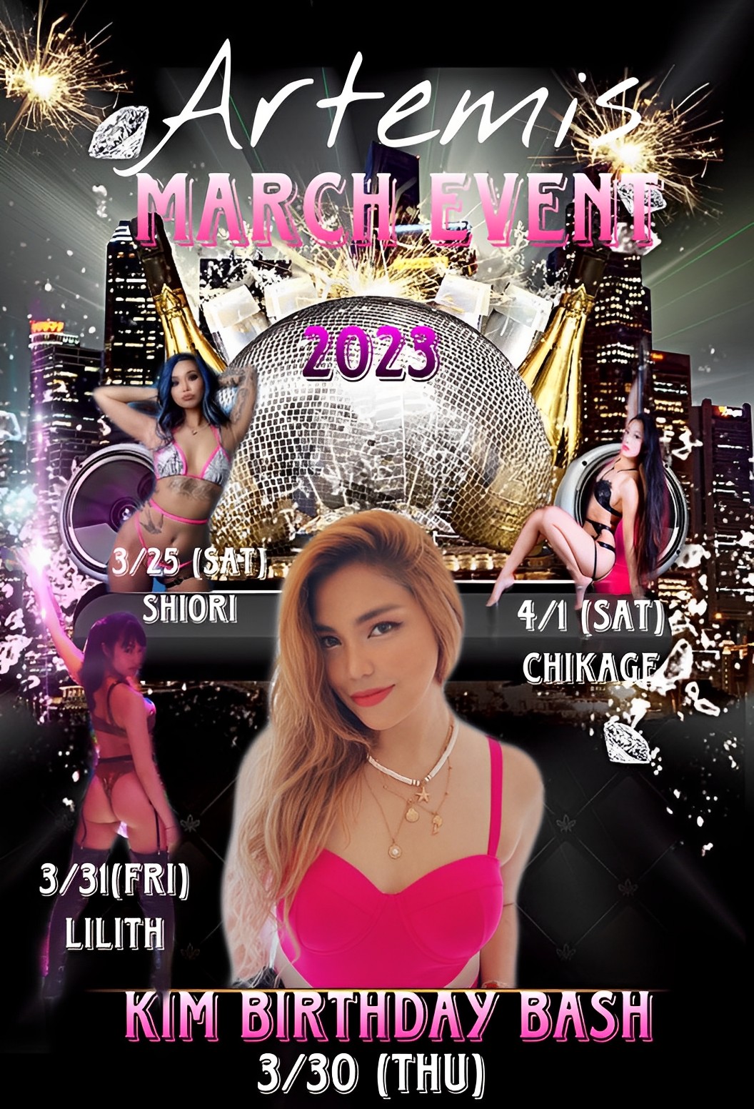 Kim BIRTHDAY PARTYのお知らせ いつもアルテミスにご来店いただき有り難うございます。 3月のイベント告知を致します。 2023年3月25日(土曜日)Showtime2023年3月30日(木)31日(金)、 […]